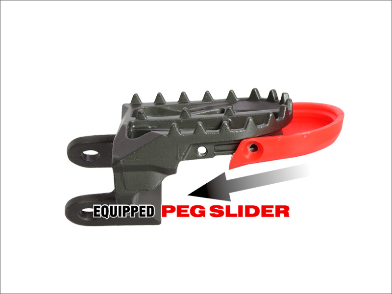 - Shorter length, higher peg postion for super moto racing use, prevents peg body wear by hitting asphalt.